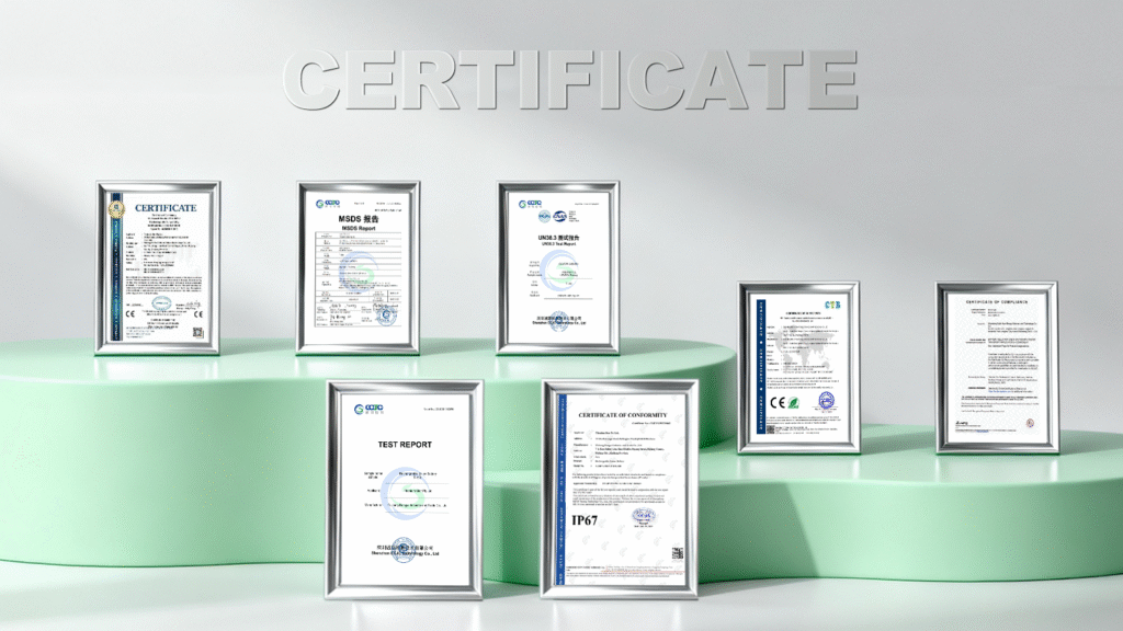 - Comprehensive Certifications :IEC62619, CE, UN38.3, MSDS, ROHS, ISO9001.
