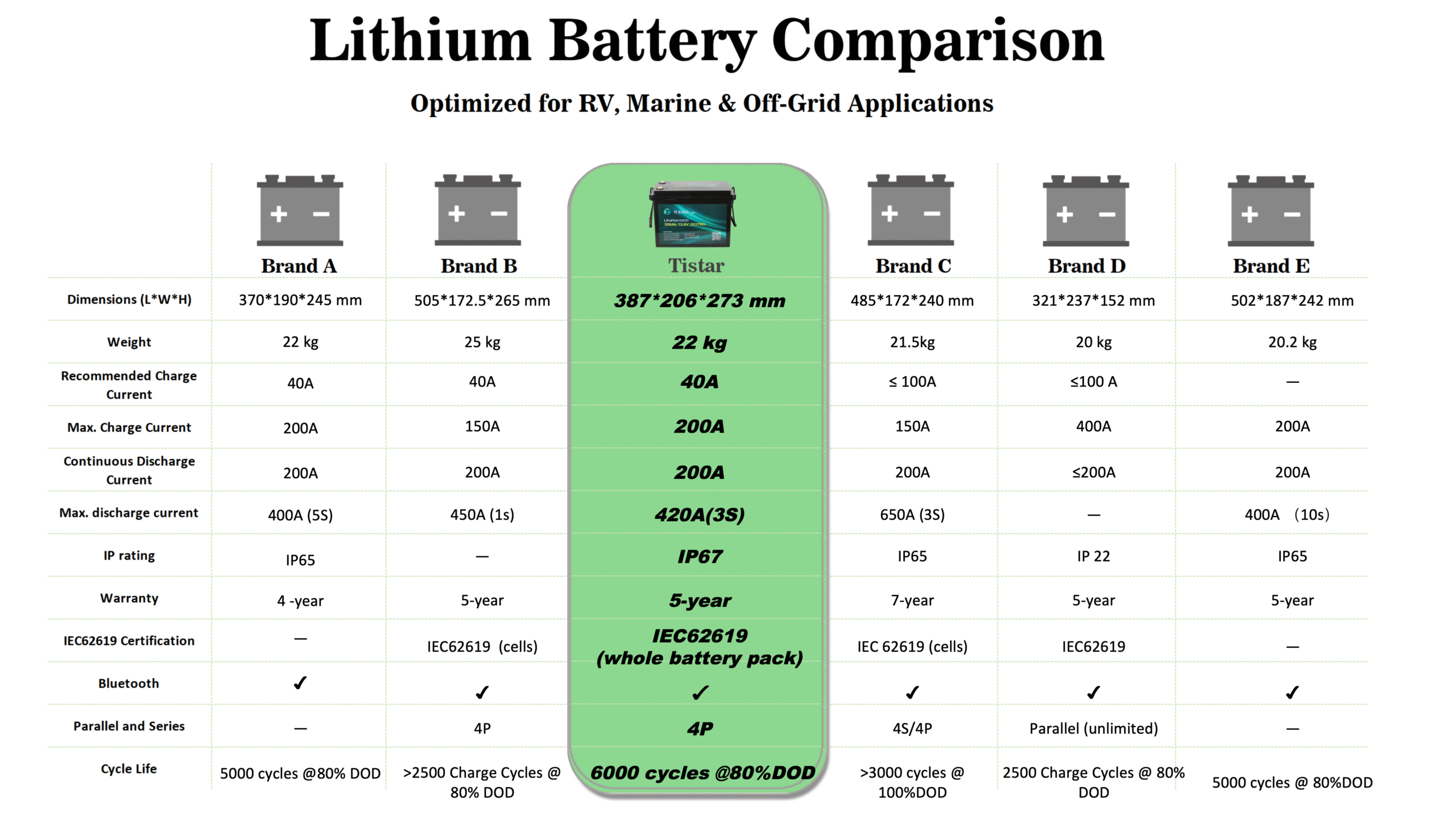 See key specifications side by side to choose the battery that fits your needs.